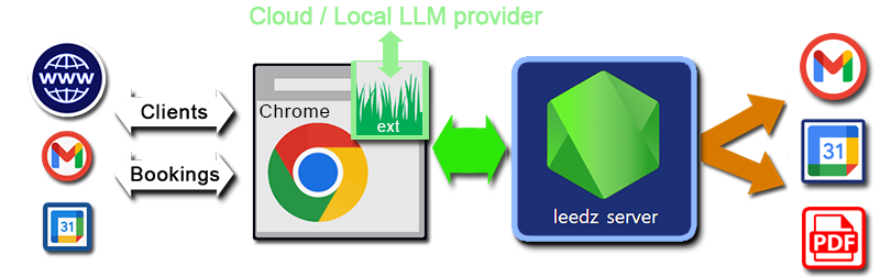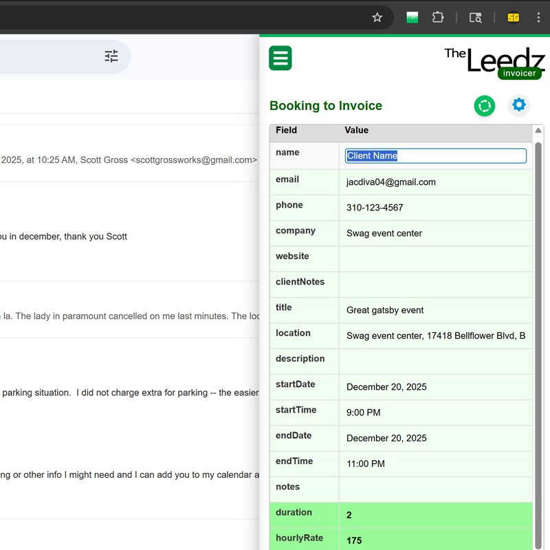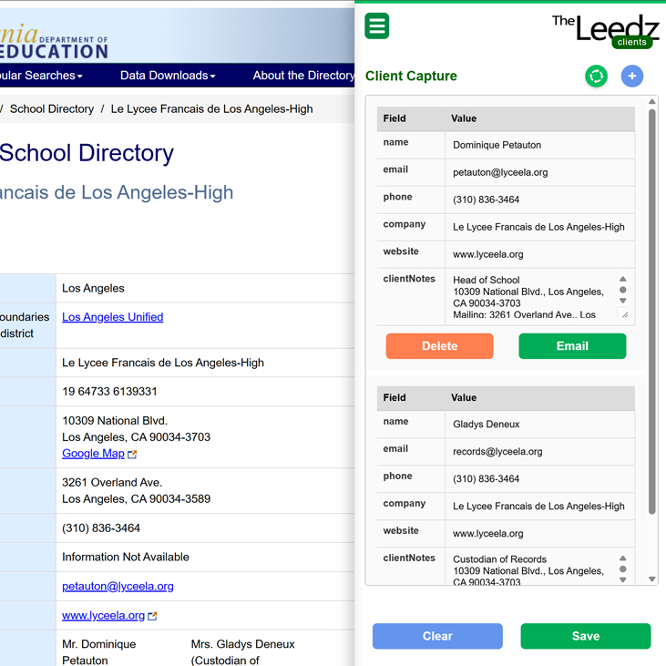 Install in your browser to scan web pages and Gmail threads. Save the Clients, and generate one-click: